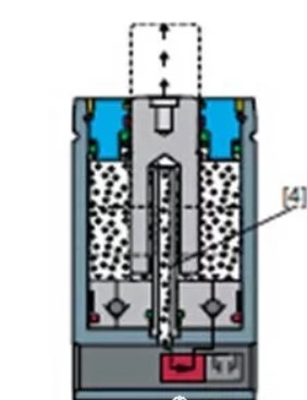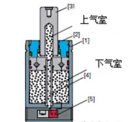 活塞杆到达下止点位置时,上气室压力大于下气室压力,活塞杆被锁住,机床滑块回程时,活塞杆不会马上向上返回,起到延时可控的作用。
